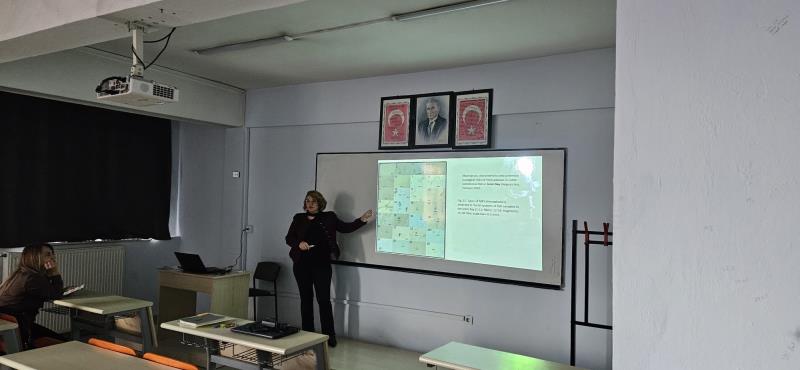 Öğrencilerle öncelikle kendi mesleki serüvenini paylaşan Sayın Uncumusaoğlu, daha sonra uzmanlık alanı olan “Mikroplastik Kirliliği” üzerine bir seminer verdi. Plastiğin ne olduğu, nasıl üretildiği, genel özellikleri ve çeşitleri ile ilgili bilgi verdikten sonra, mikroplastiğin nasıl oluştuğu, nasıl sınıflandırıldığı, insan vücuduna giriş yolları konularında genel bilgiler paylaştı. En önemli olarak da mikroplastiğin çevre ve canlılar üzerindeki olumsuz etkileri, insan sağlığına etkileri üzerinde durarak alınabilecek bireysel, kurumsal ve devlet düzeyindeki önlemler konusunda bilgilendirme yaptı. Özellikle bireysel önlemler açısından öğrencilere farkındalık kazandıracak örnekler üzerinde duruldu.